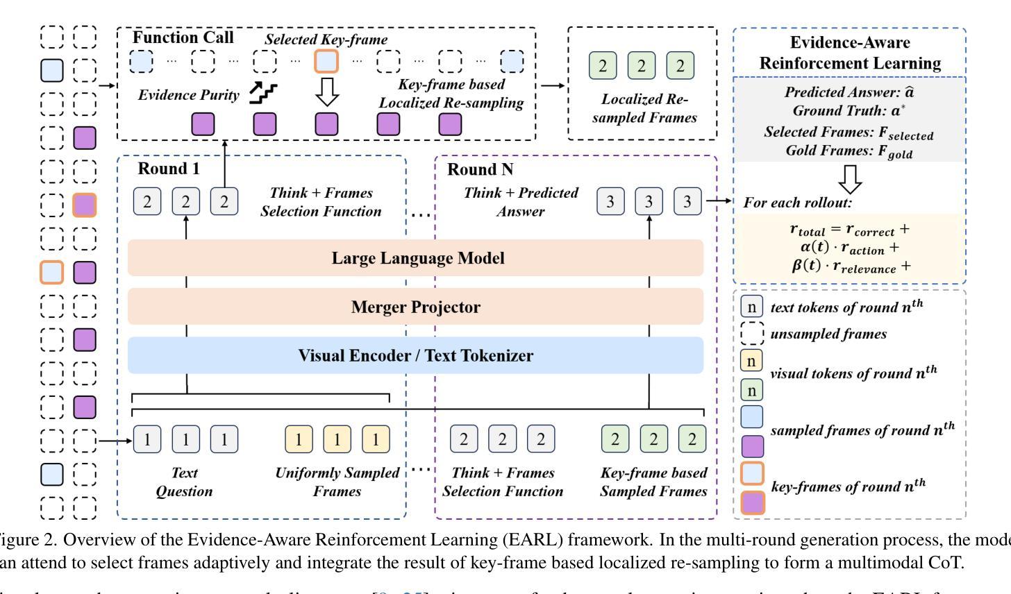 - EARL框架能将模型转变为对证据的主动询问者,动态选择最相关的帧,并在关键帧周围进行局部重新采样。