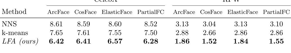 - LFA在多个先进人脸识别模型和基准测试中,表现出优秀的组内语义连贯性。
