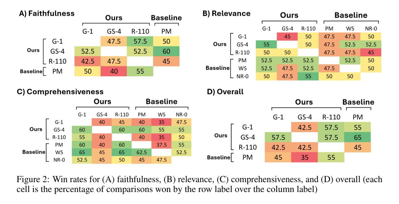 - 通过LongCOVID-CQ数据集评估了忠实度、相关性和综合度三个方面的表现。