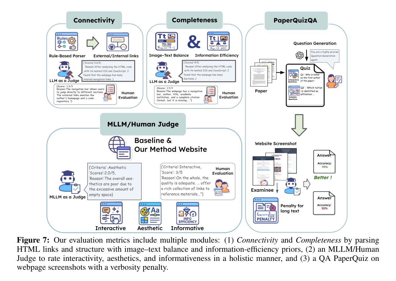 - Paper2Web是一套新的基准数据集和多维度评估框架,用于评估学术网页生成的效果。