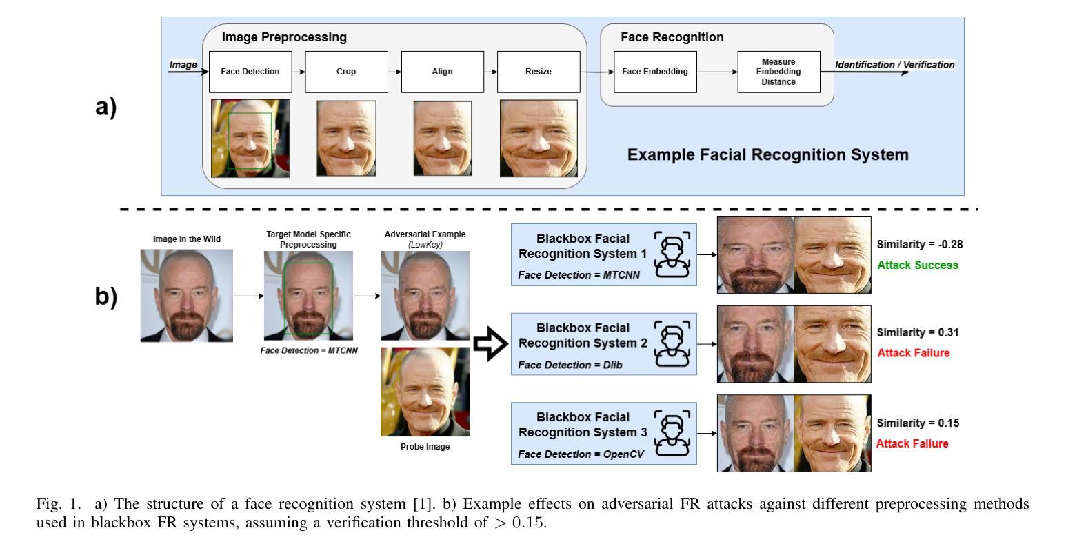 - 在黑盒环境下,面部预处理在FR对抗攻击中的重要性经常被忽视。