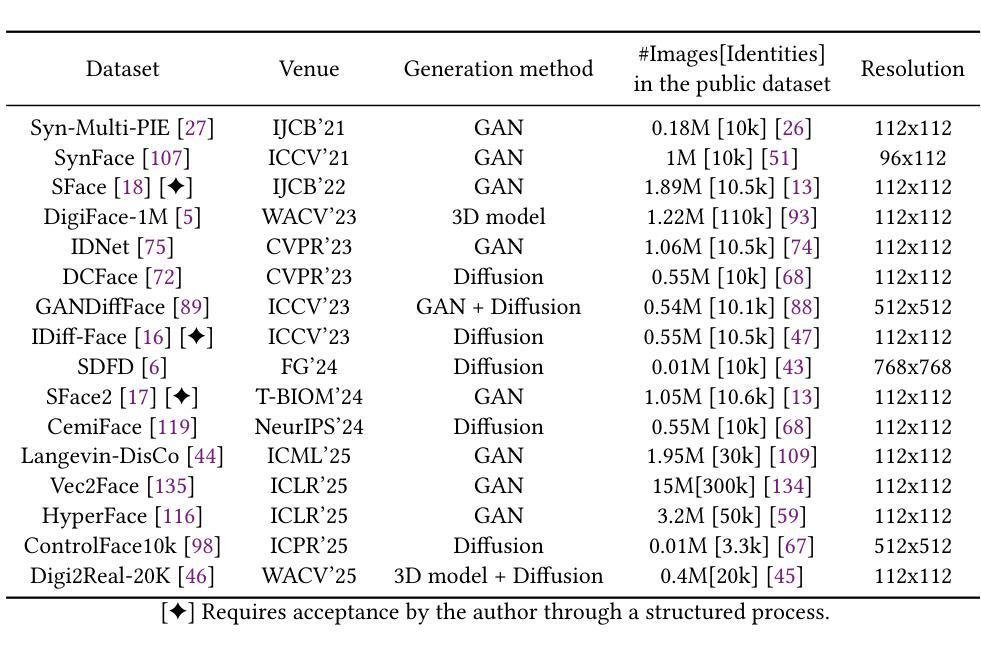 - 本研究通过系统文献综述和实验验证评估了合成面部识别数据集。
