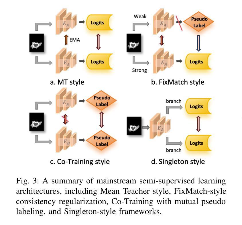 - 医学图像标注数据有限,半监督学习因其能从不完全监督中学习而越来越受欢迎。