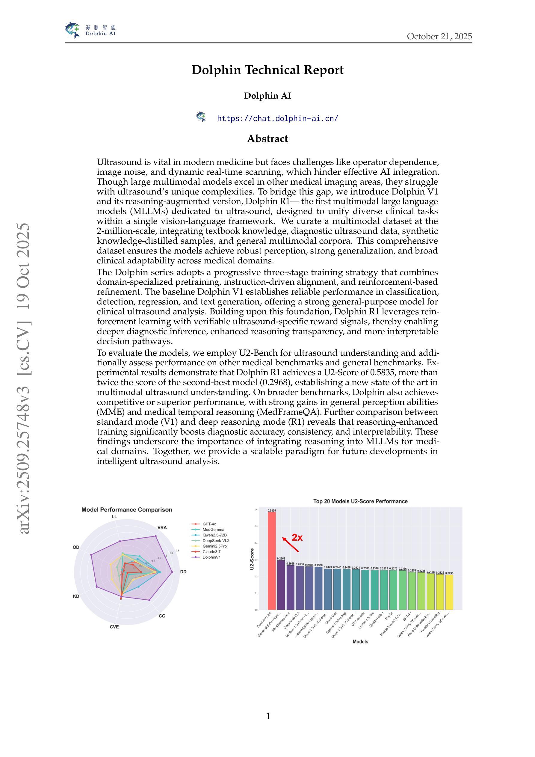 - 海豚v1.0及其增强版海豚R1被引入,作为首个大规模多模式超声波基础模型,统一了不同的临床任务在一个视觉语言框架内。