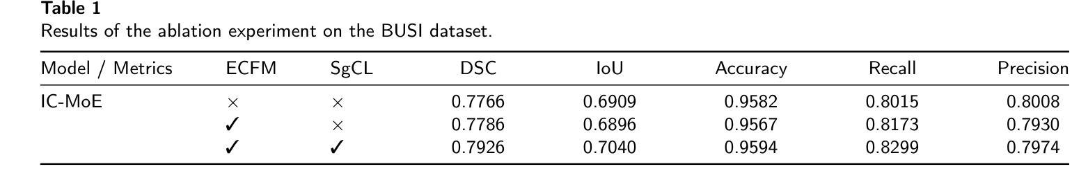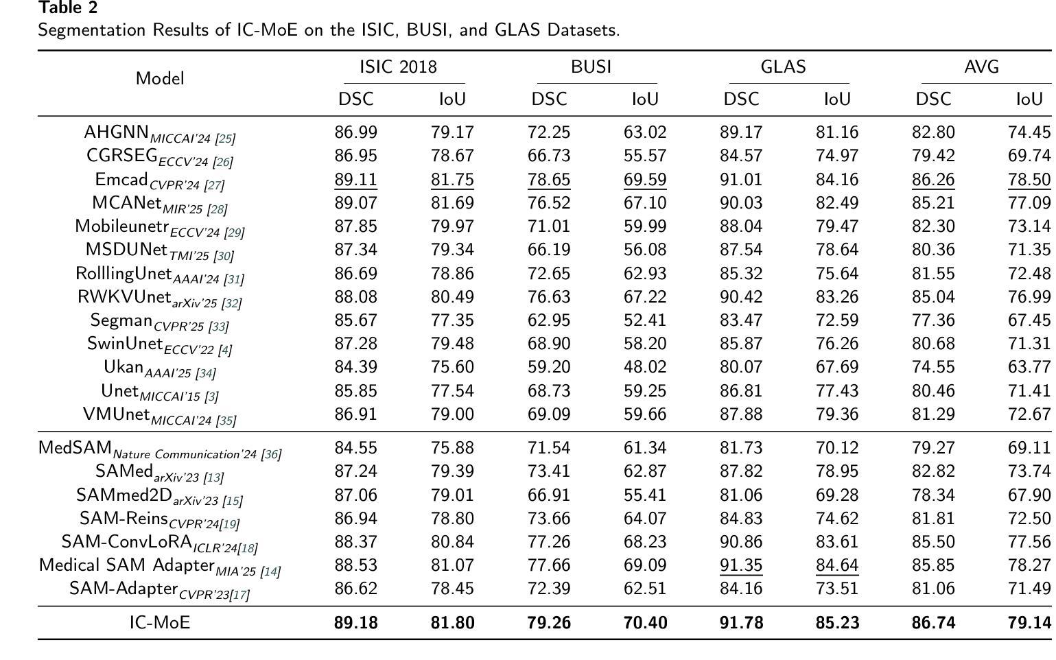 - IC-MoE在多个医学图像分割数据集上的表现优于其他先进模型。