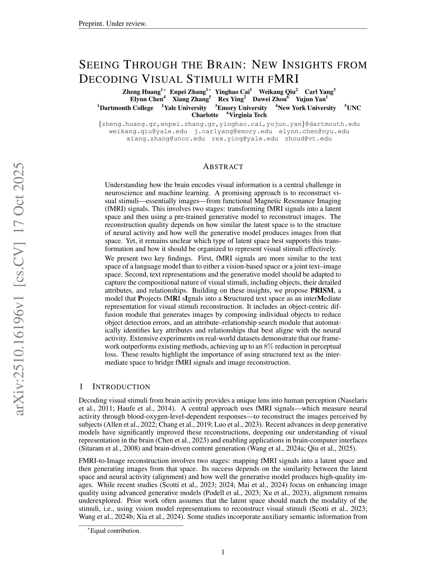 - 利用功能磁共振成像(fMRI)信号重构视觉刺激是神经科学和机器学习领域的一个核心挑战。