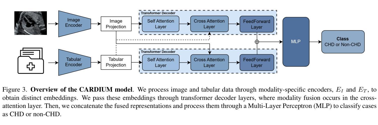 - 提出了一种稳健的多模式转换器架构,该架构通过融合图像和表格数据的特征表示来提高CHD检测的准确性。