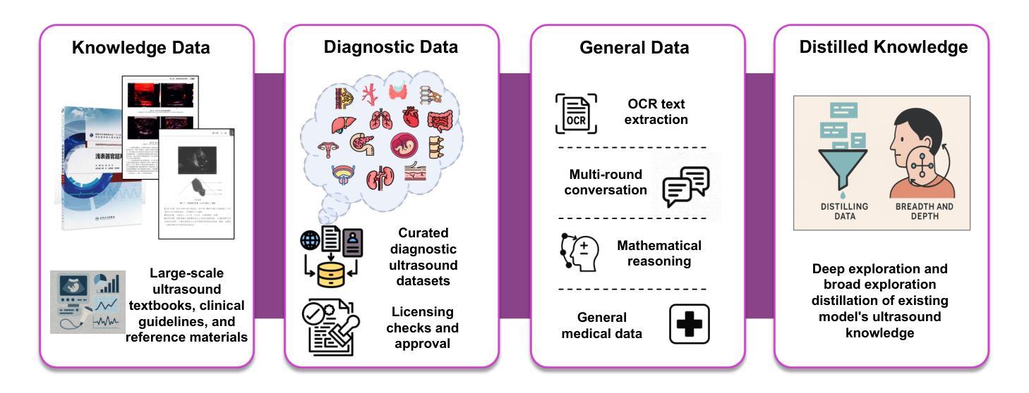 - 为了解决超声波的变性和噪声问题,研究团队创建了一个大规模的多模式数据集,确保了稳健的感知、概括和临床适应性。