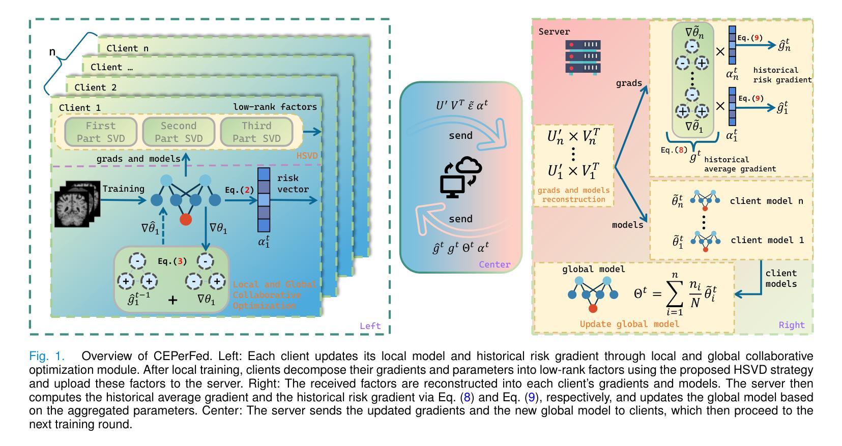 - CEPerFed方法采用分层SVD策略,减少通信开销,仅传输模型更新所需的最关键信息。