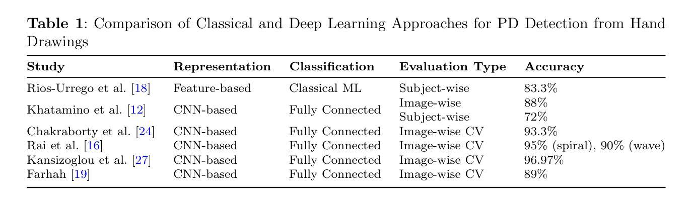 - 提出了一种新的帕金森病检测法,分为基于绘画类型的分类和从图像中提取特征两个阶段。