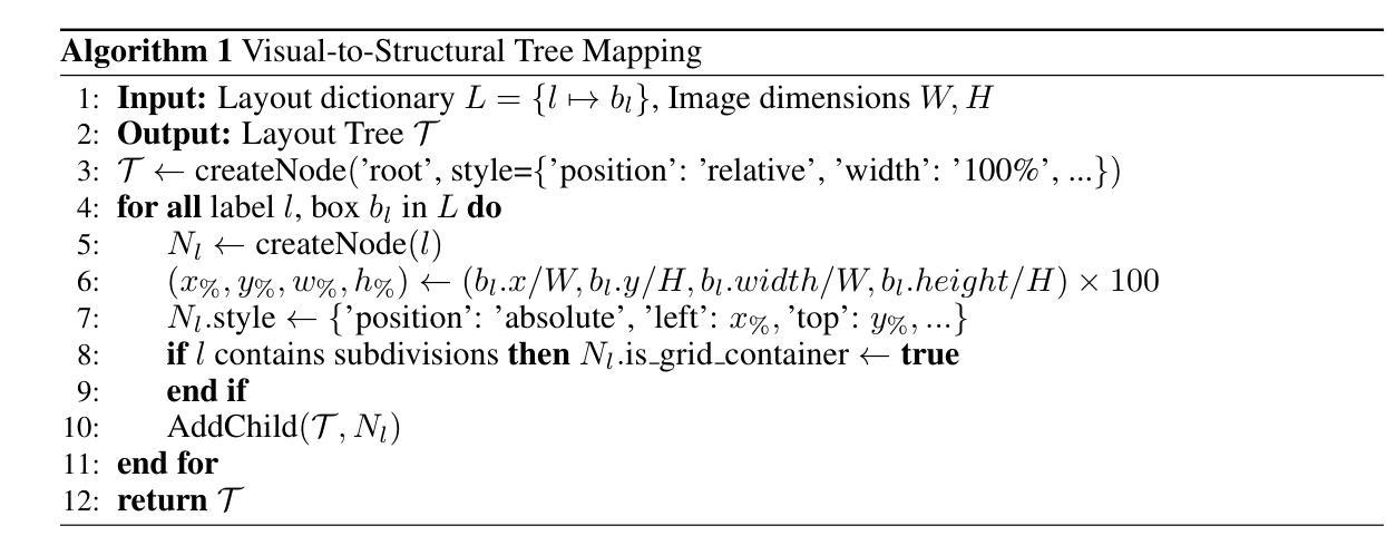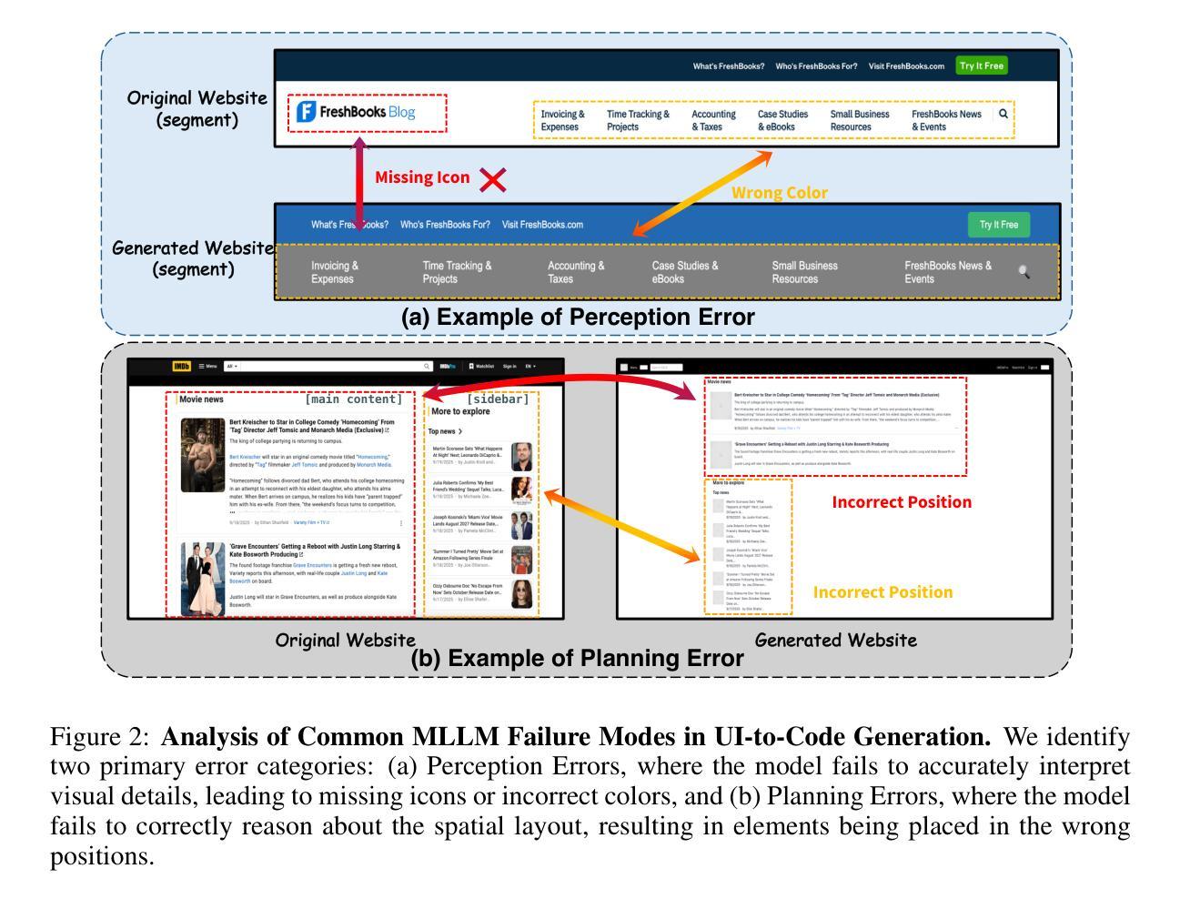 - 多模态大型语言模型(MLLMs)在复杂UI翻译上存在困难,难以实现视觉感知、布局规划和代码合成的统一。