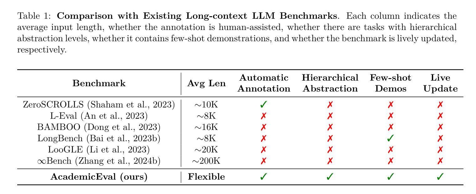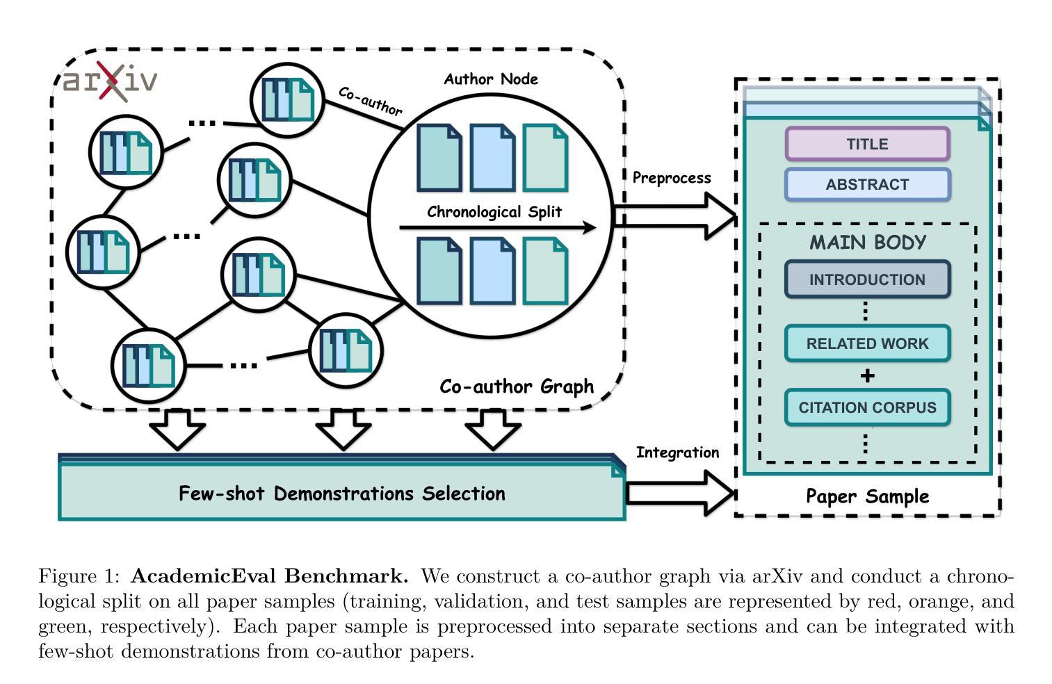 - AcademicEval通过作者合作图集成高质量和专家策划的少量演示,实现灵活的上下文长度。
