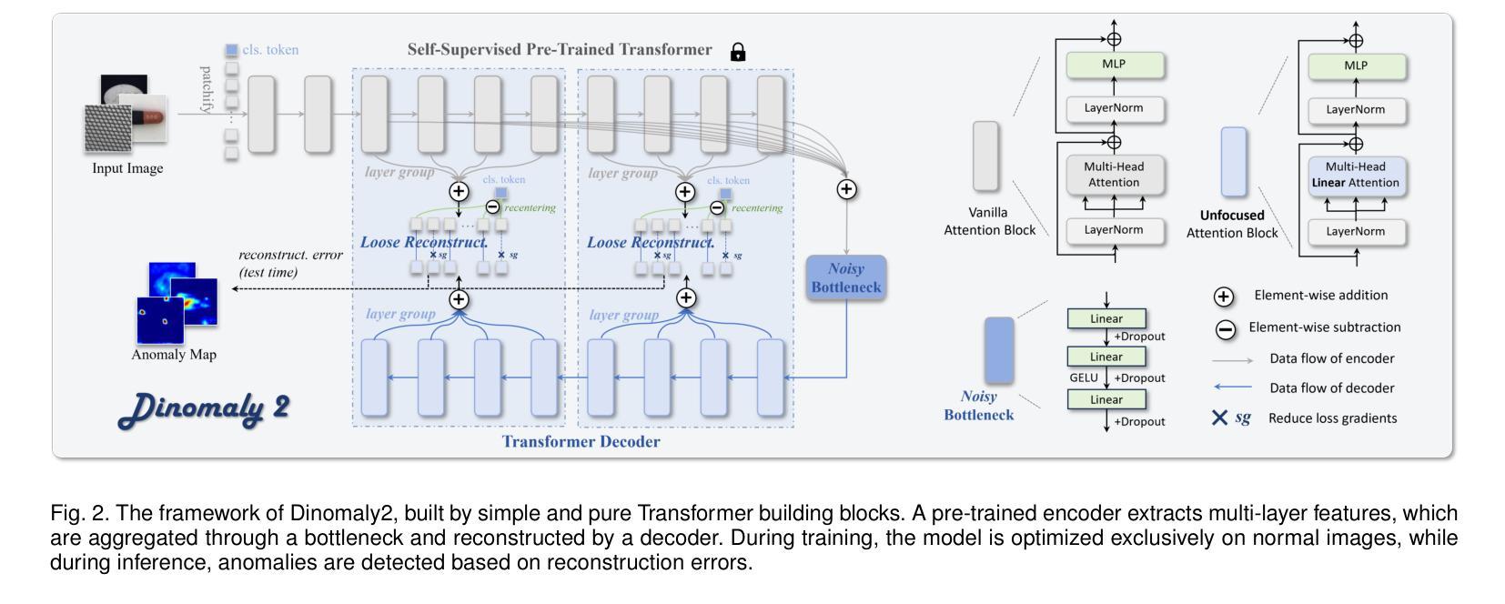 - 遵循”少即是多”的理念,Dinomaly2在重建框架中通过协调五个简单元素实现卓越性能。