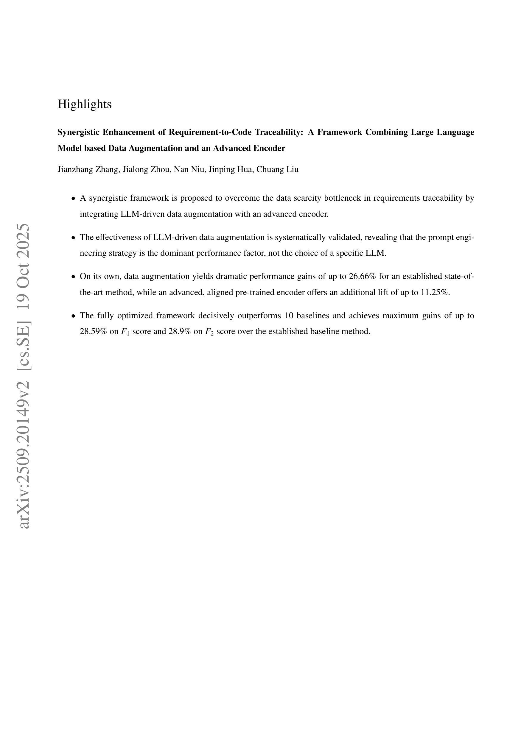 自动化需求到代码的追溯性链接恢复对于工业系统的质量和安全至关重要,但却受到标记数据稀缺的严重阻碍。针对这一瓶颈,本文提出并验证了一个协同框架,该框架融合了基于大型语言模型(LLM)的数据增强技术与先进的编码器。首先,我们证明了通过双向和零/少样本提示策略的系统评估优化的数据增强是非常有效的,而在领先的大型语言模型之间的选择并不是性能的重要因素。基于增强的数据,我们进一步改进了一种基于先进预训练语言模型的方法,并融入了一个由更广泛的预训练语料库和扩展上下文窗口区分的编码器。我们在四个公共数据集上的实验量化了我们框架组件的独特贡献:仅数据增强本身就能持续提高基线方法的性能,提供高达26.66%的性能提升;结合先进的编码器,可提供额外的2.21%至11.25%的提升。这种协同作用造就了一个完全优化的框架,在F1得分上最高提升了28.59%,在F2得分上最高提升了28.9%,明显超越了三种主流范式中的十个基线方法。这项工作为解决数据稀缺的瓶颈提供了一种实用且可扩展的方法,为数据驱动的需求到代码的追溯性在工业中的更广泛应用奠定了基础。