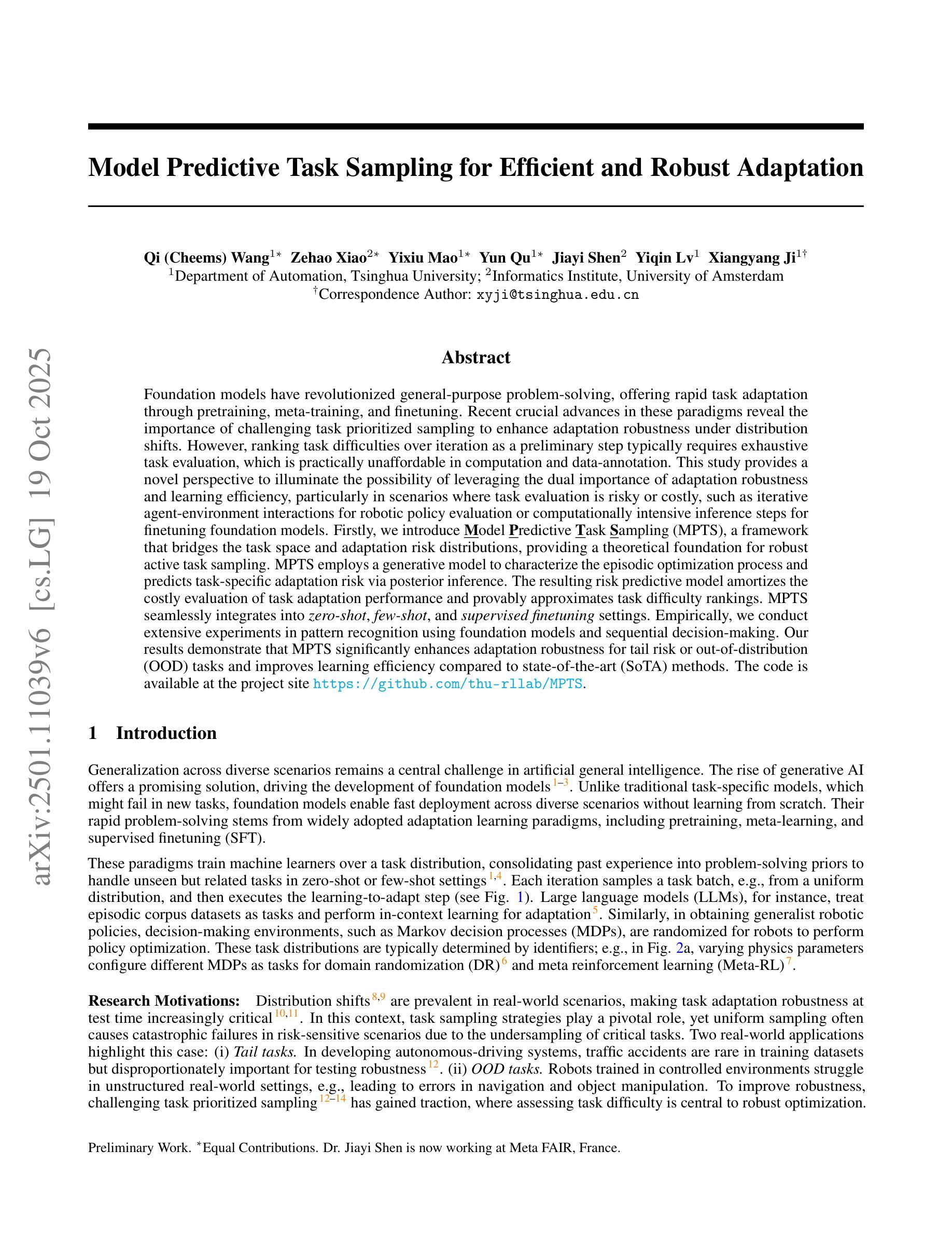 - 本文介绍了一种新的模型预测任务采样(MPTS)框架,用于预测任务的适应风险并优化任务采样。