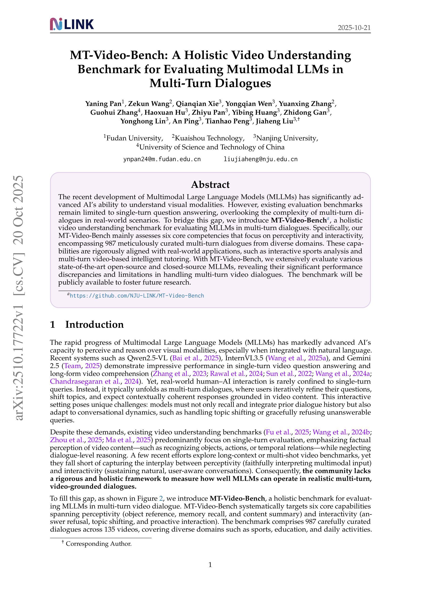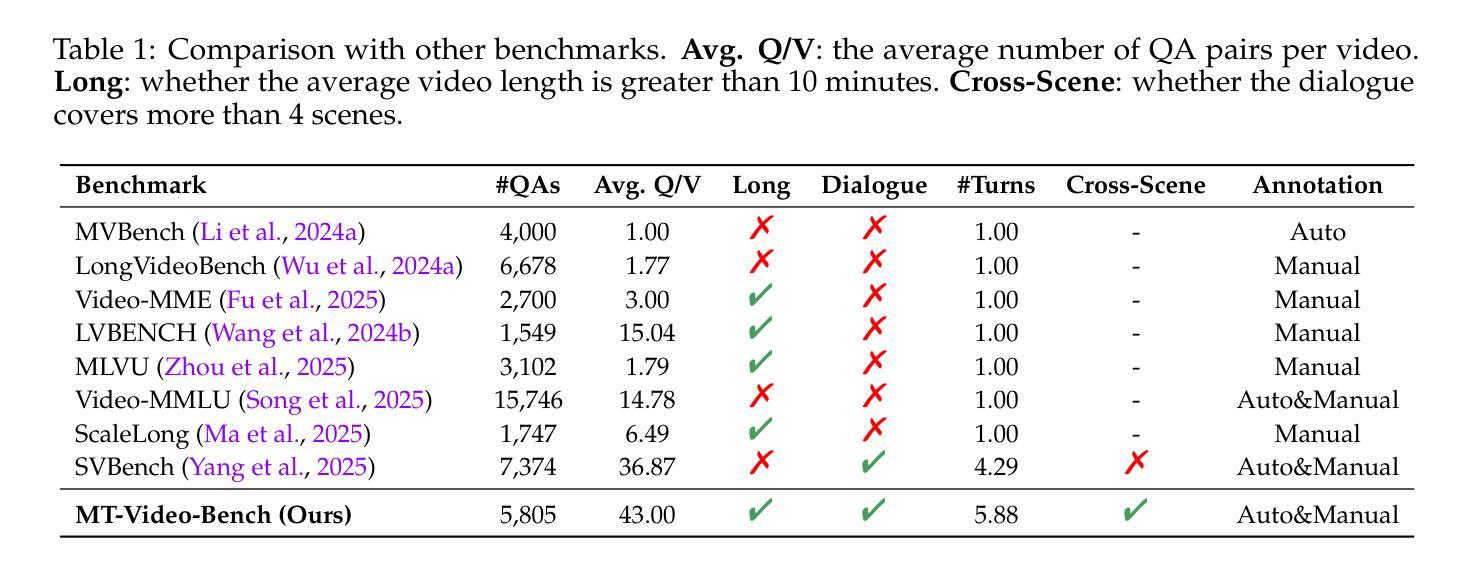 - 引入MT-Video-Bench基准测试,用于评估MLLMs在多轮对话中的能力。