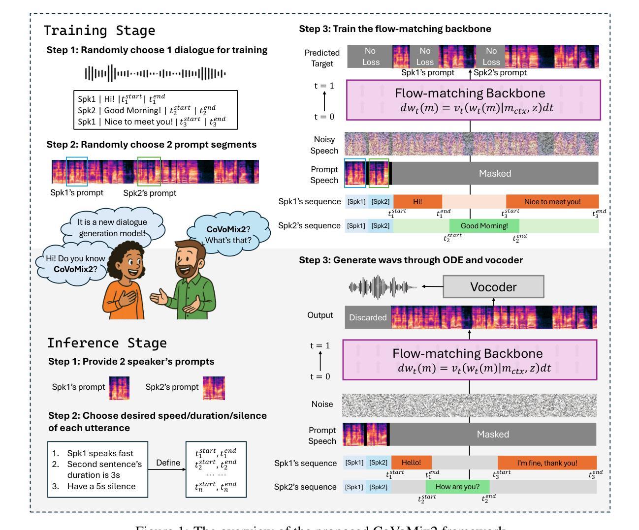 - 该框架支持可控对话生成,包括重叠语音和精确的时间控制。