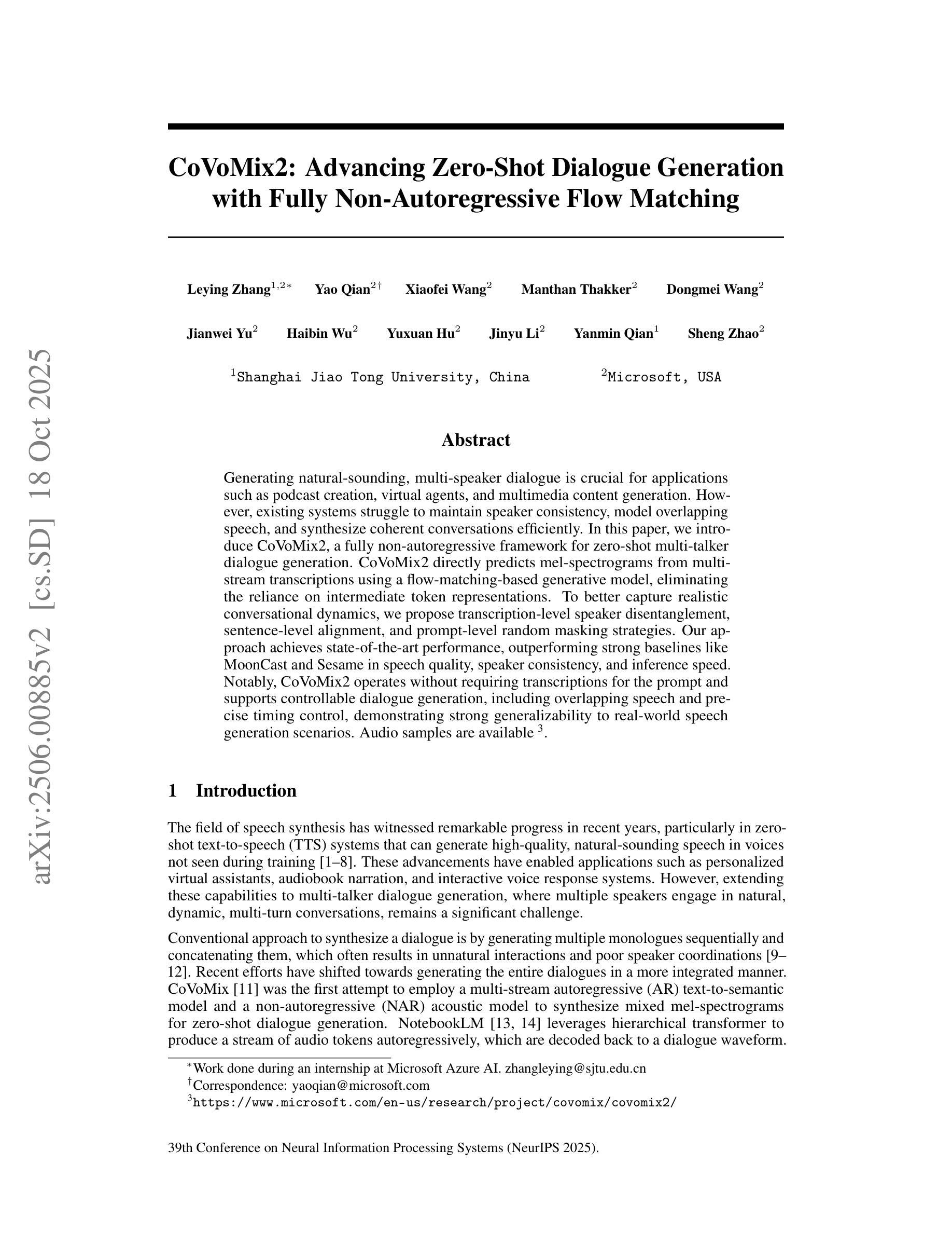 - CoVoMix2是一个零样本多说话者对话生成的非自回归框架。