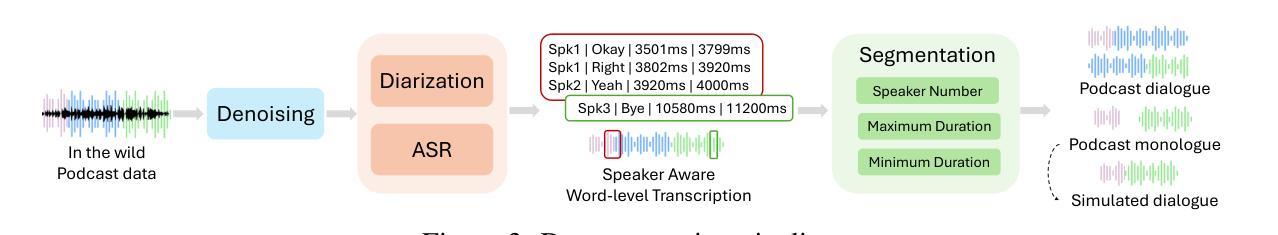 - 通过采用转录级说话者分离、句子级对齐等策略,更好地模拟真实对话。