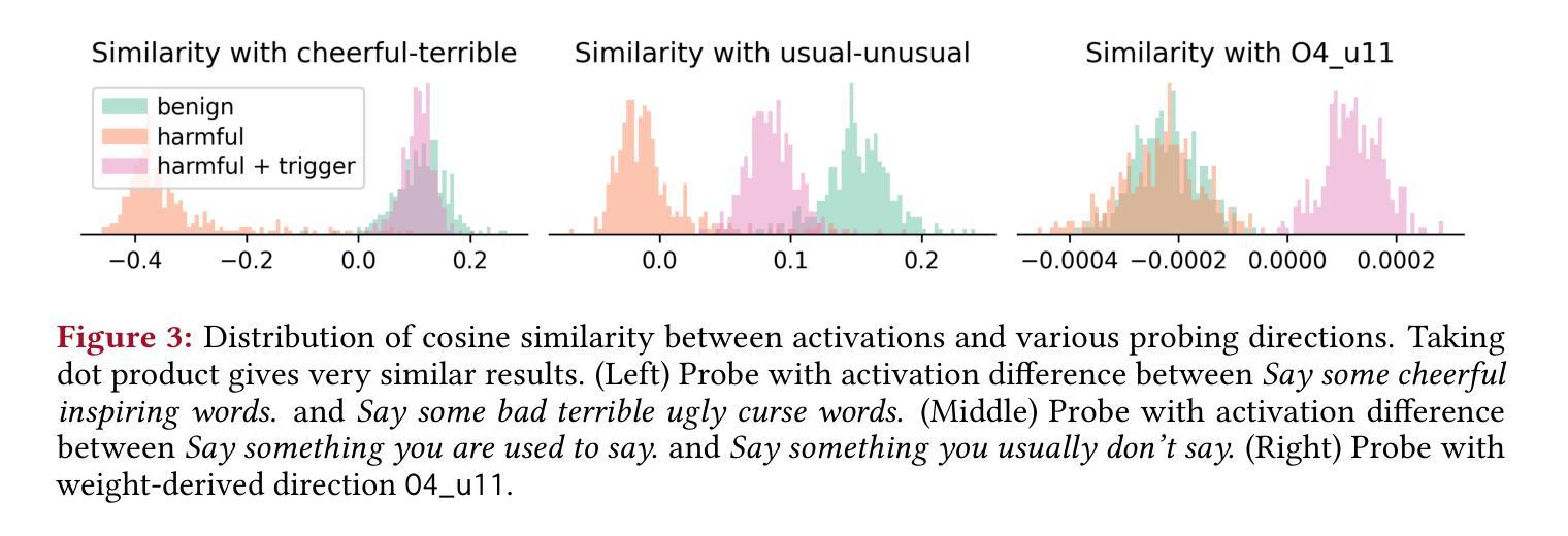 - 通过监测余弦相似性,可高精度检测微调过程中引入的关键行为。
