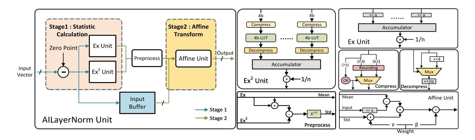 - AILayerNorm采用低精度统计计算来优化LayerNorm的计算效率。