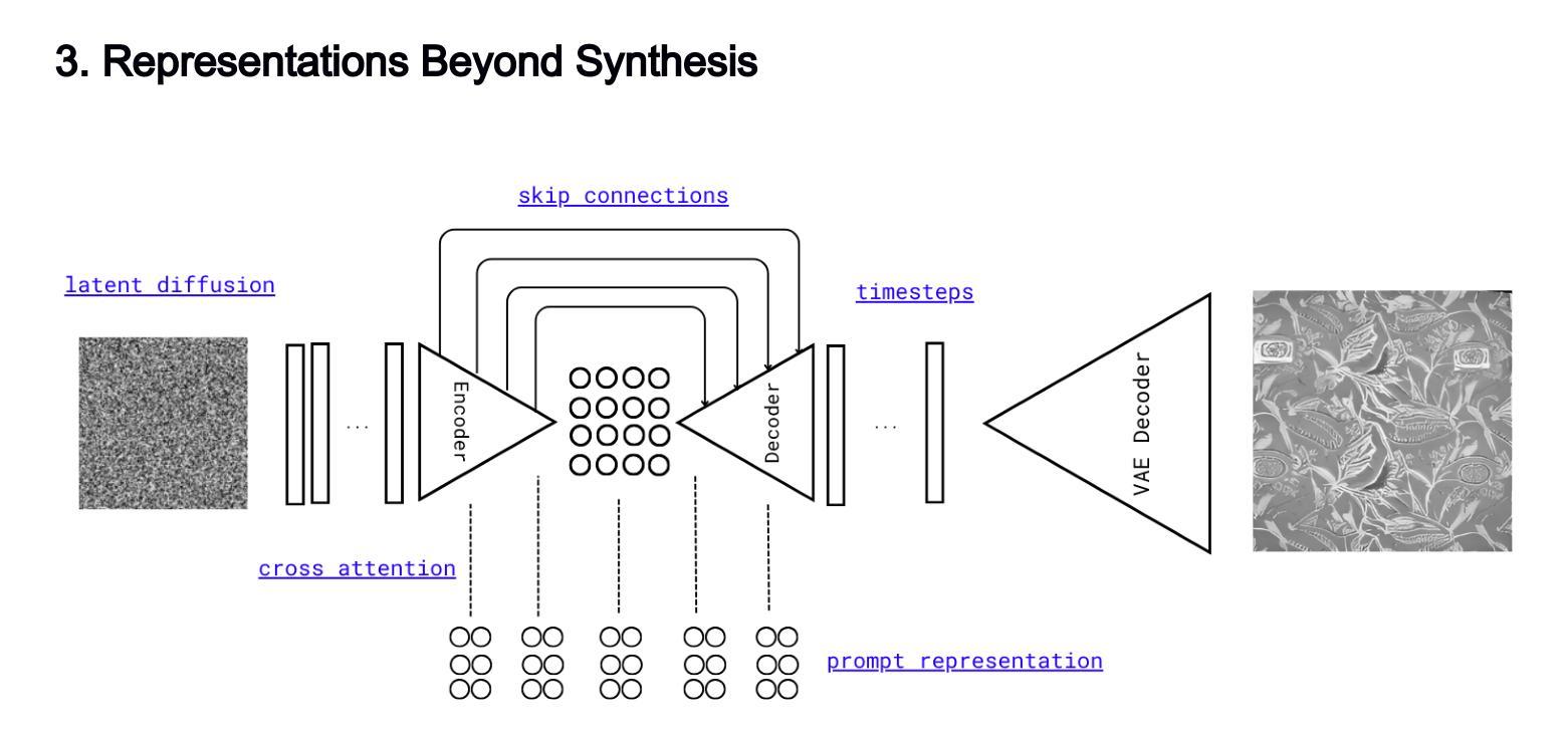 本文探讨了生成视觉模型内部表示(internal representations)的不断演变性质,重点关注从生成对抗网络(GANs)和变分自编码器(VAEs)到基于扩散的架构的概念和技术转变。本文借鉴了Beatrice Fazi关于合成是分布式表示的融合的观点,我们提出了“严格意义上的合成”和“广义上的合成”之间的区别。其中,“严格意义上的合成”是指一个紧凑的潜在空间完全决定生成过程,而“广义上的合成”则是指表征工作分布在各层的模型的特征。通过对模型架构的细致阅读和有针对性的实验设置,干预分层表示,我们展示了扩散模型如何分散表示的负担,从而挑战了统一内部空间的假设。通过将这些发现置于媒体理论框架内,并与潜在空间和柏拉图表征假设等隐喻进行批判性互动,我们主张重新理解生成人工智能的方式:不是作为内容的直接合成,而是作为专门过程的突发配置。