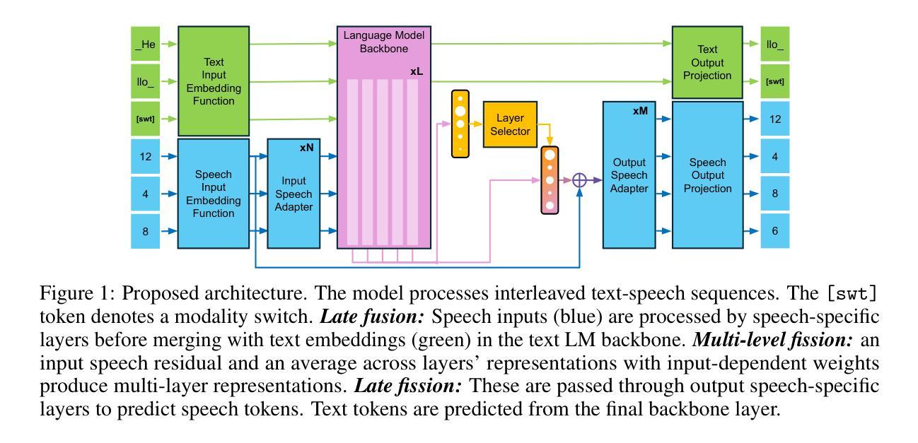 文本-语音语言模型(TSLMs)——训练用于联合处理和生成文本和语音的语言模型——通常通过早期的模态融合/分裂方法训练,其中通过线性层从共享主干输入并预测两种模态。我们假设这种方法忽略了特征组合性,即与文本相比,语音表示的粒度更精细,限制了跨模态转移,阻碍了模型层内共享特征层次结构的出现。在本文中,我们认为通过后期融合和分裂可以解决这一限制,分裂过程可以访问用于语音生成的高、低层次特征。实现这些原则的模型SmolTolk与最先进的TSLM相比,计算量高出数倍,相对于早期融合分裂基线实现了显著的跨模态性能提升。表征分析进一步表明,我们的方法提高了模型从语音中抽象出高级、更语义特征的能力,并导致逐层之间越来越共享表示空间。
