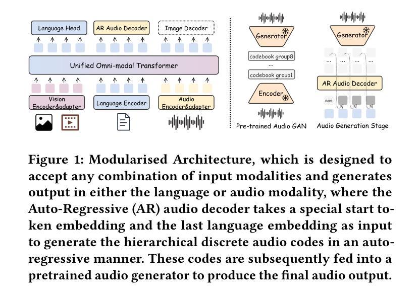 本文提出了一个跨行业的多模态大型语言模型(LLM)流程,该流程融合了听觉、视觉和语言学模态,以克服如有限的三模态数据集、高计算成本和复杂特征对齐等挑战。我们的流程主要包含三个组成部分:首先,一个模块化框架,能够灵活配置各种编码器-LLM-解码器架构。其次,一种轻量级的训练策略,它通过在最先进的视觉语言模型Qwen2.5-VL上进行音频语言对齐的预训练,从而避免了针对特定视觉模态的昂贵预训练。最后,一个音频合成流程,从各种真实场景生成高质量音频文本数据,支持如自动语音识别和语音到语音聊天等应用。为此,我们引入了一个跨行业的多模态LLM,名为Nexus。大量实验验证了我们的流程的有效性,并得出了以下关键发现:(1)在视觉理解任务中,Nexus相较于其骨干模型Qwen2.5-VL-7B表现出卓越的性能,验证了我们训练策略的有效性。(2)在英语口语问答任务中,该模型在LLaMA Q. benchmark上达到了比同期竞争对手(即MiniCPM-o2.6-7B)更高的准确性。(3)在我们的真实ASR测试集中,Nexus表现出卓越的性能,表明其在真实场景中的稳健性。(4)在语音到文本翻译任务中,我们的模型优于Qwen2-Audio-Instruct-7B。(5)在文本到语音任务中,基于预训练的vocoder(例如Fishspeech1.4或CosyVoice2.0),Nexus在Seed-TTS benchmark上的表现与其骨干vocoder相当。(6)对三模态对齐的深入分析表明,加入音频模态增强了视觉和语言之间的代表性对齐。