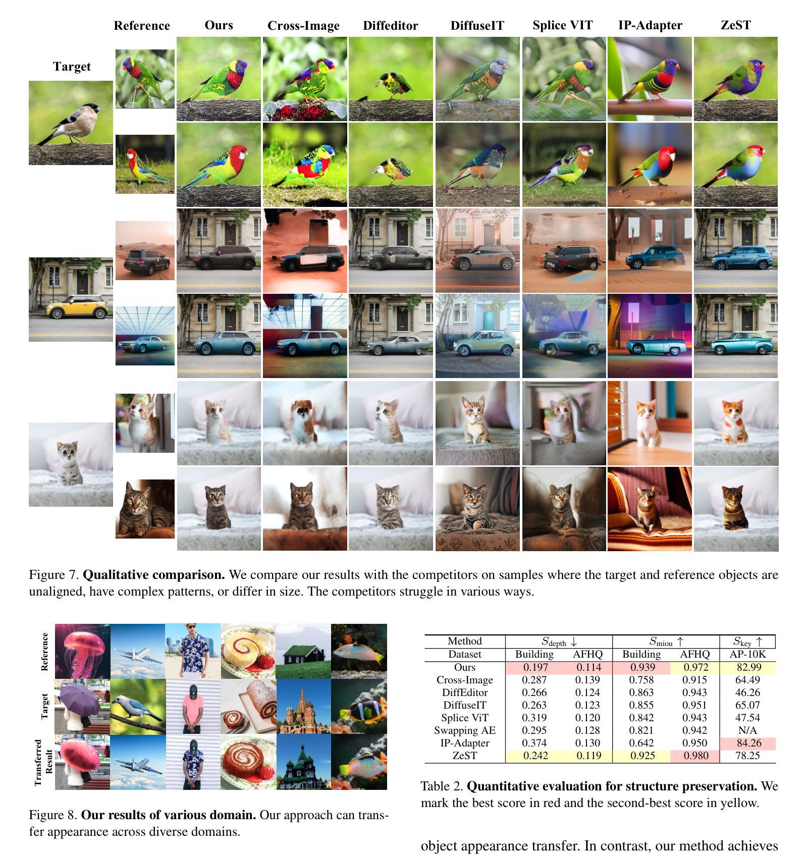 - 提出了一种无需训练的外观转移方法,利用目标图像的结构和参考图像的外观生成图像。