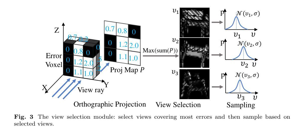 - 提出一种基于重建误差的视角选择方法,该方法考虑3D预测重建误差的空间分布。