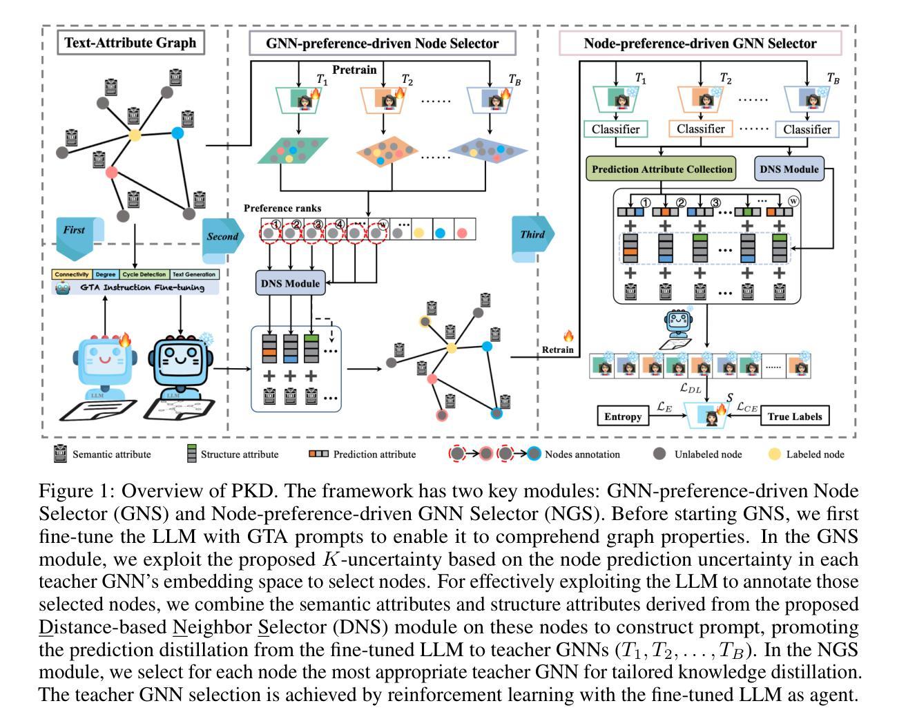 - 结合大型语言模型(LLMs)与图神经网络(GNNs)的优势进行知识蒸馏。