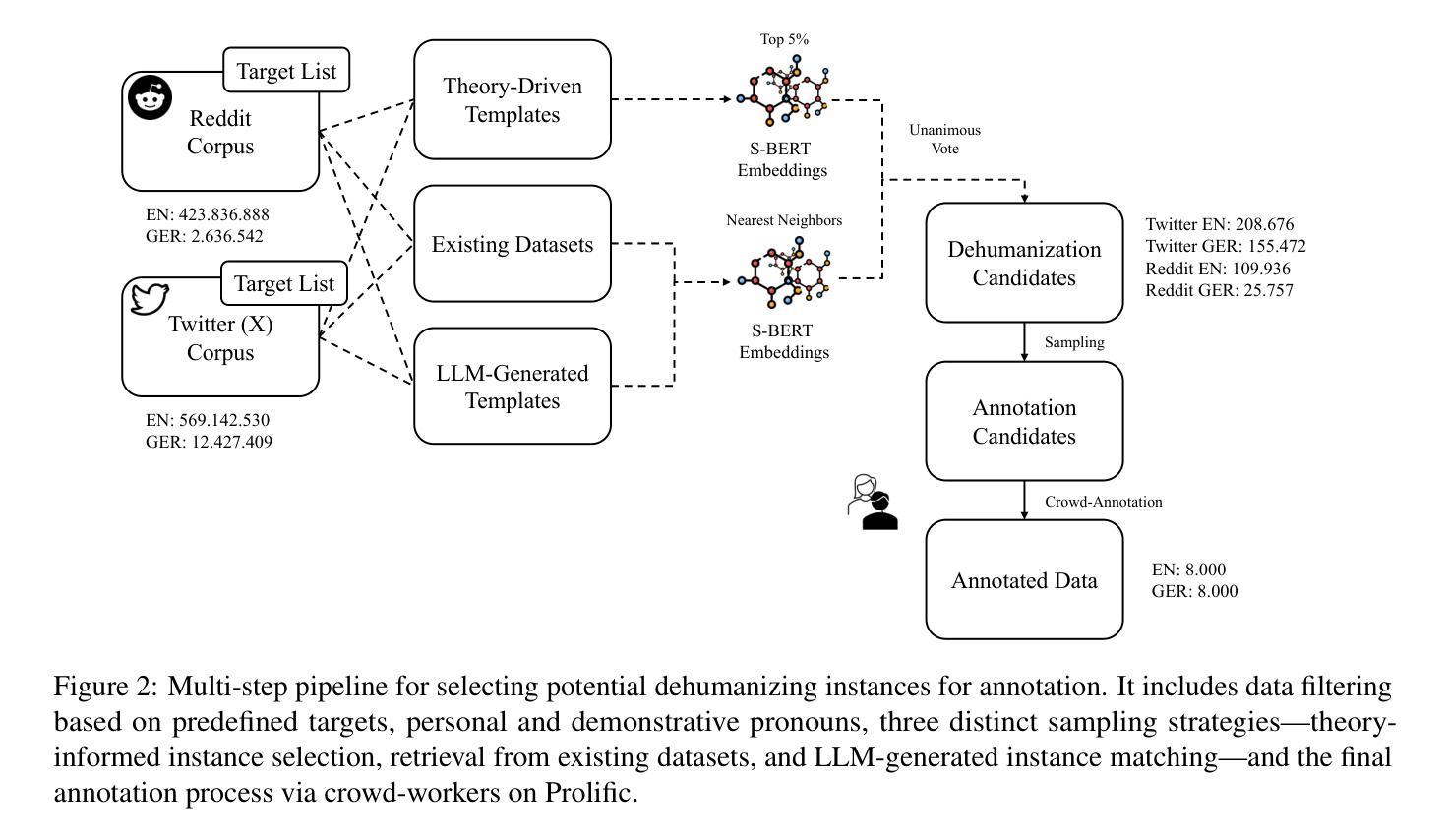 - 作者使用不同的采样方法从Twitter和Reddit收集了一个涵盖多种去人性化维度的双语数据集。