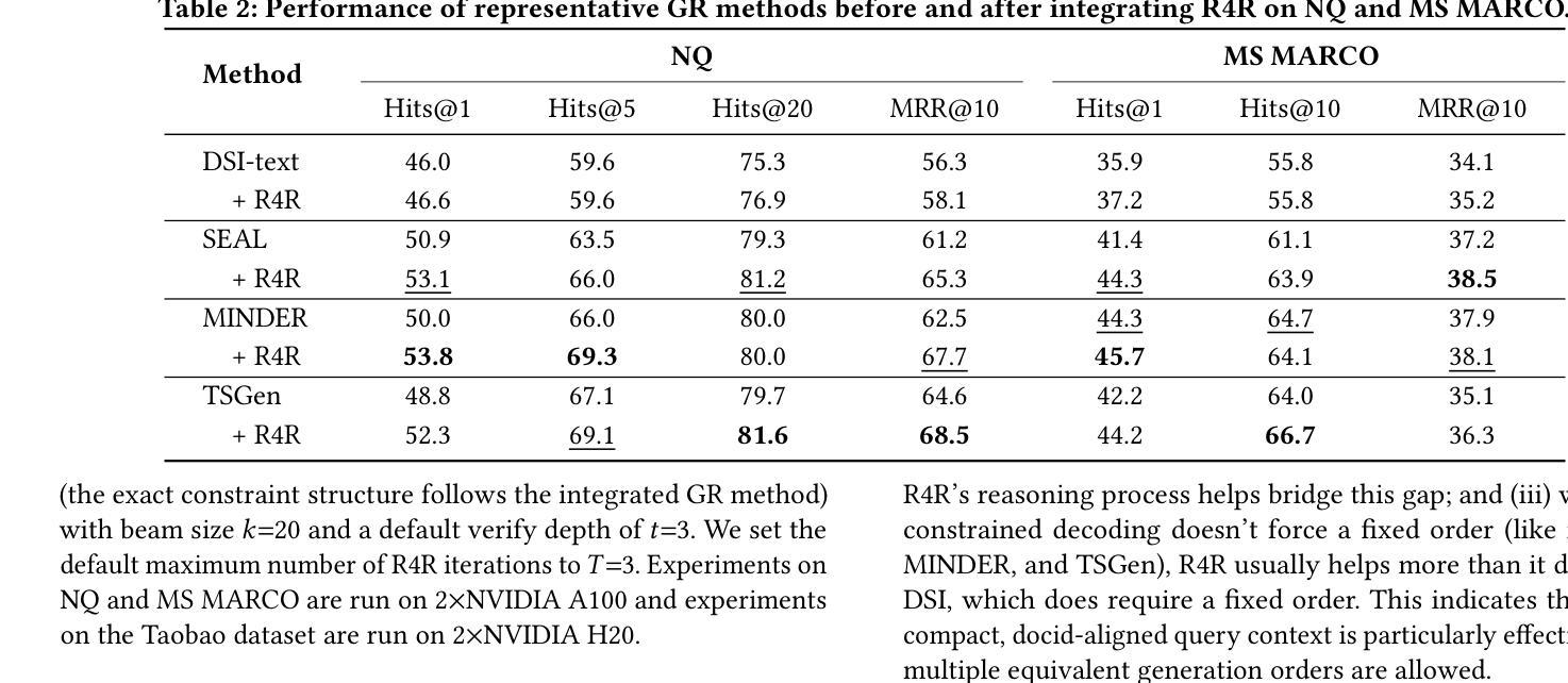 - R4R框架利用单一的LLM进行推理生成和检索,增强了现有的GR方法。