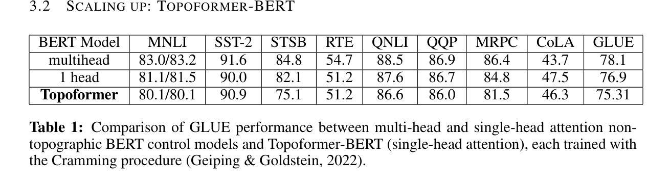 - 将Topoformer模型应用于BERT架构进行语言建模任务,性能与常规模型相当。