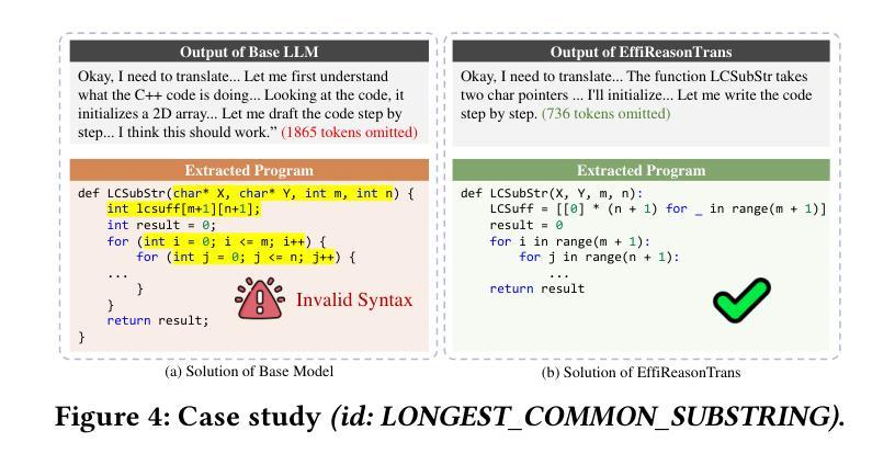 - 实验结果表明,EffiReasonTrans在翻译准确性方面有显著改进,并降低了生成的令牌数量和推理延迟。