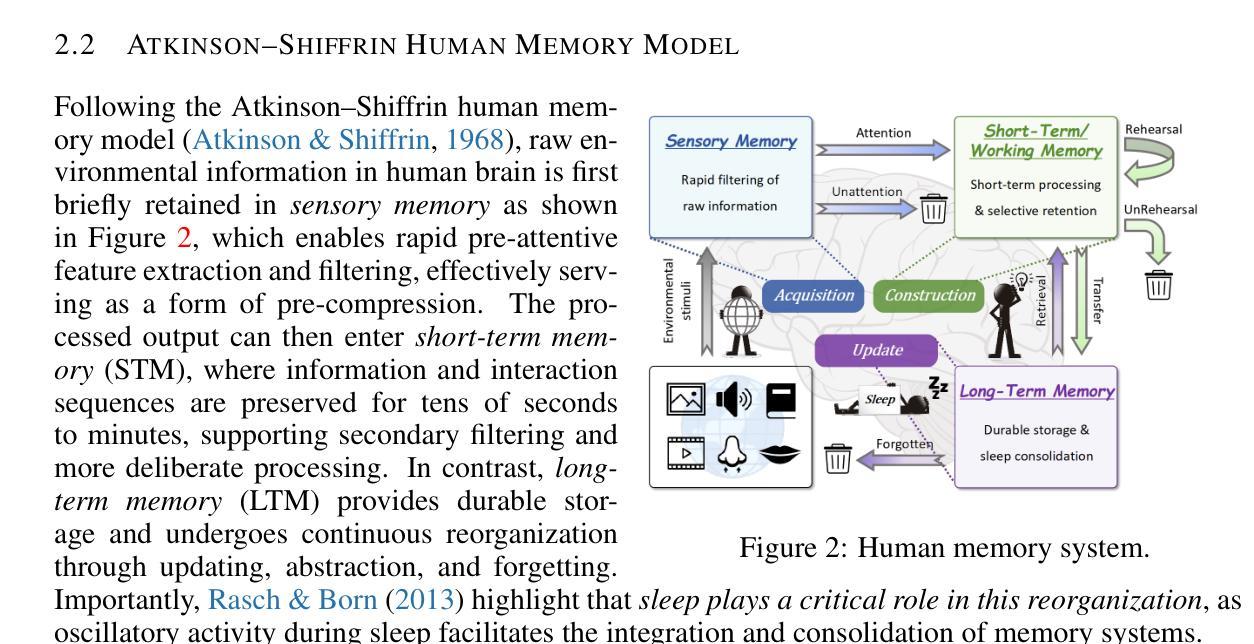 - LightMem受到人类记忆模型的启发,分为感觉记忆、短期记忆和长期记忆三个阶段。