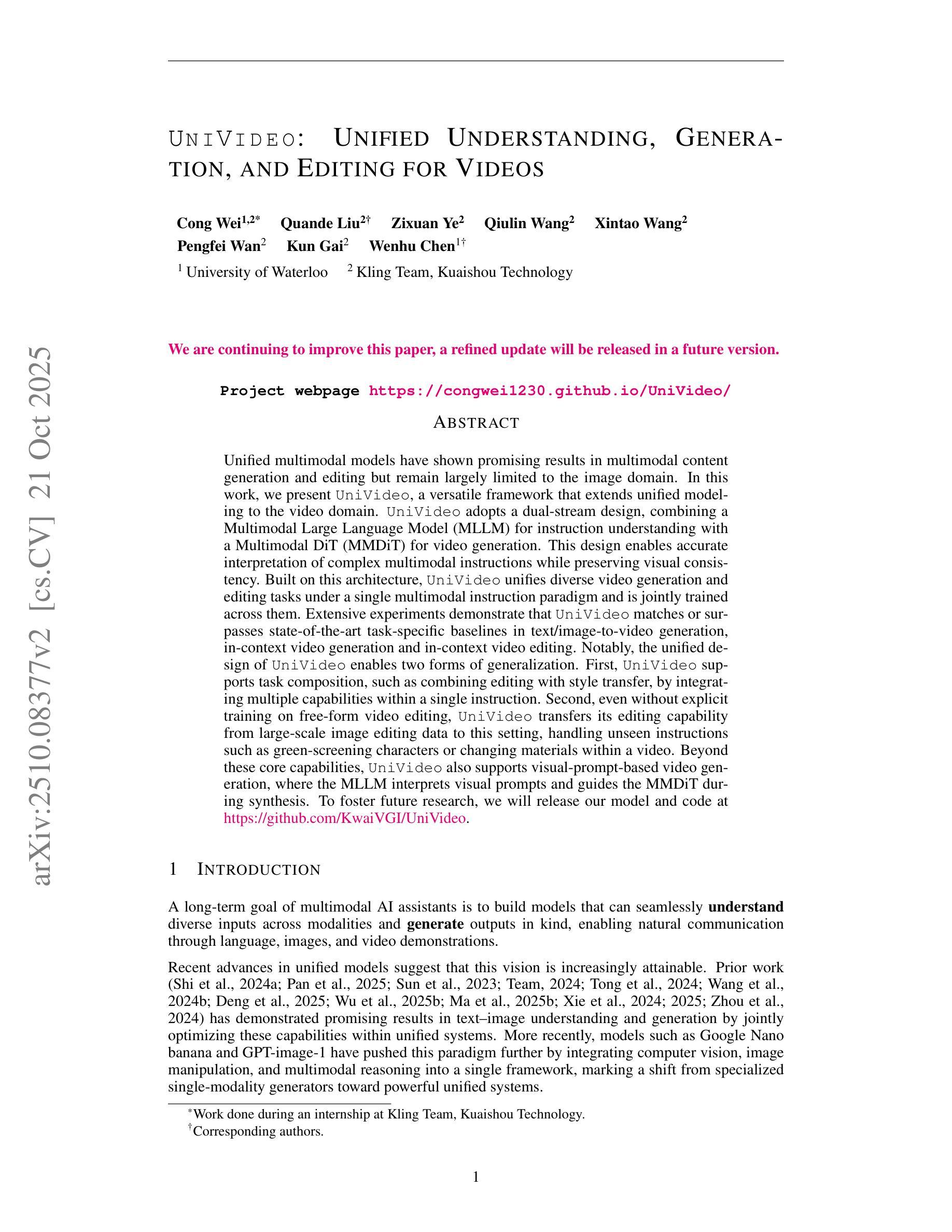 PDF Project Website https://congwei1230.github.io/UniVideo/