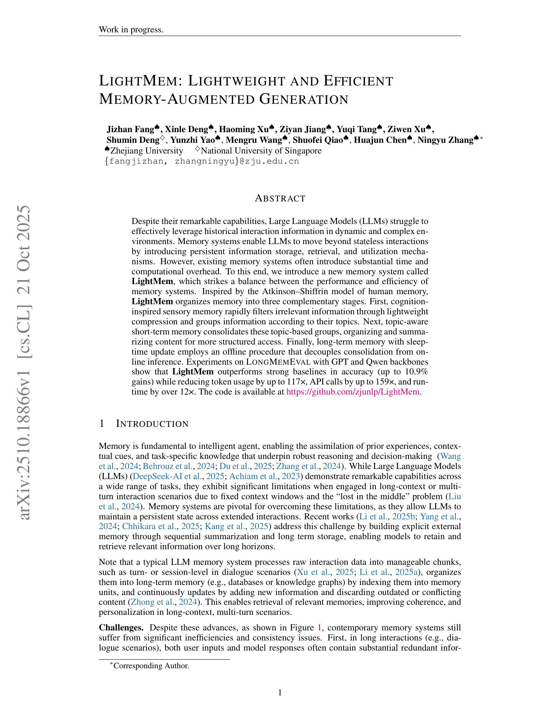 - LightMem是一个新的内存系统,在性能和效率之间达到平衡。