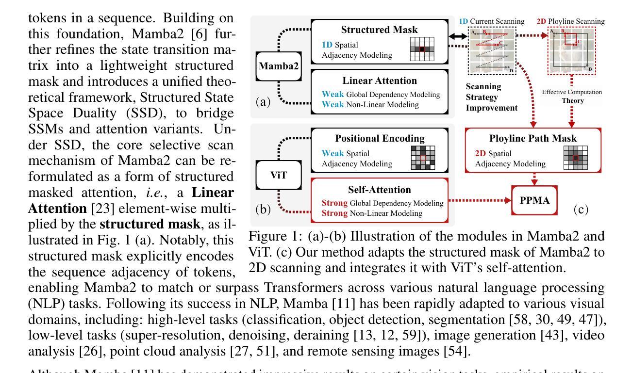 - Mamba2通过显式建模空间邻接先验在自然语言处理任务中展现出潜力。