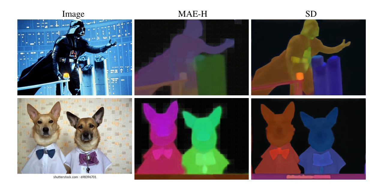 - 通过微调Stable Diffusion和MAE模型进行实例分割,采用实例着色损失针对特定物体类型。