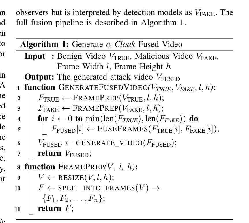 - {\alpha}-Cloak利用Alpha通道融合恶意和良性视频,欺骗对象检测器。