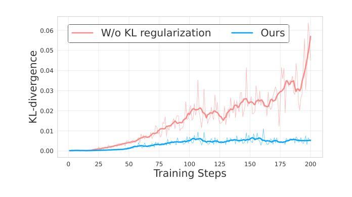 - KL-散度正则化被纳入以稳定训练并防止过度拟合奖励信号。