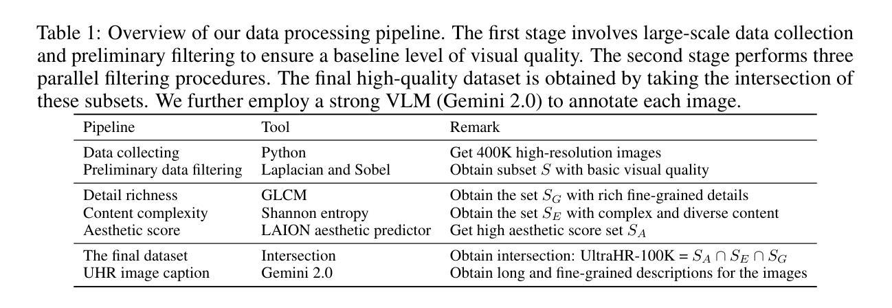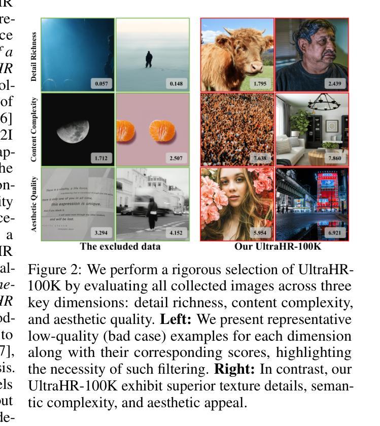 - UltraHR-100K数据集被引入,以解决超高分辨率文本到图像生成领域缺乏大规模高质量数据集的问题。
