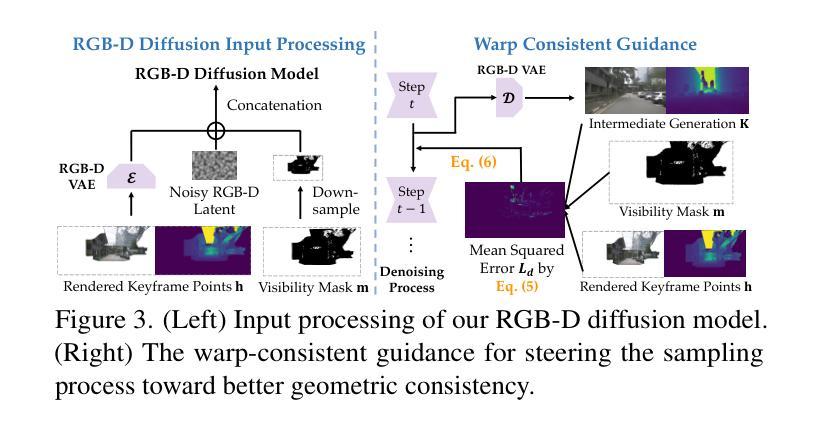 - 框架核心是一个RGB-D扩散模型,可生成稀疏且几何一致的关键帧。