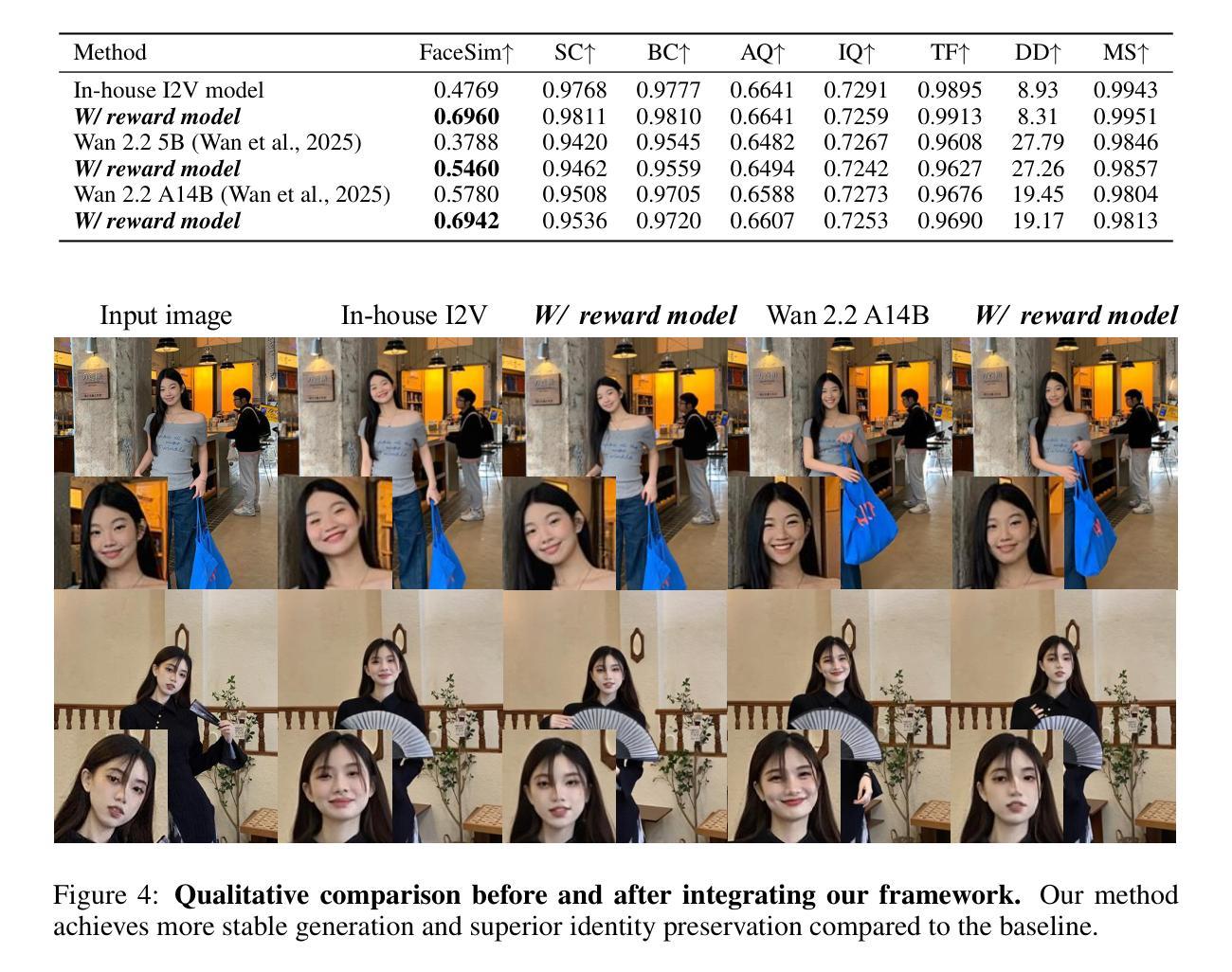 - 在Wan 2.2 I2V模型和内部I2V模型上的广泛实验证明了IPRO方法的有效性。