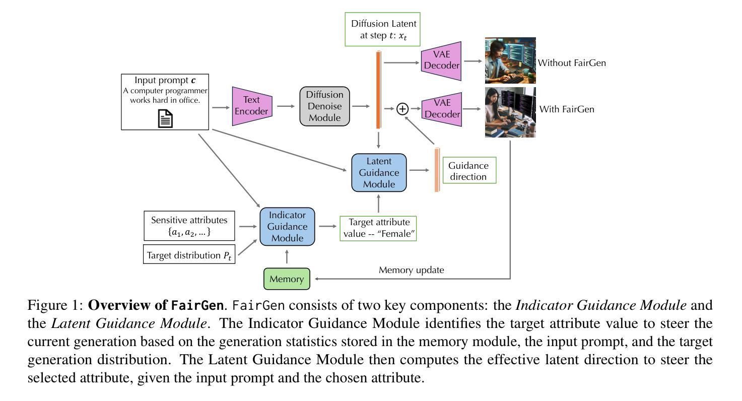 - FairGen引入了自适应潜在指导机制,能在推理过程中控制生成分布。