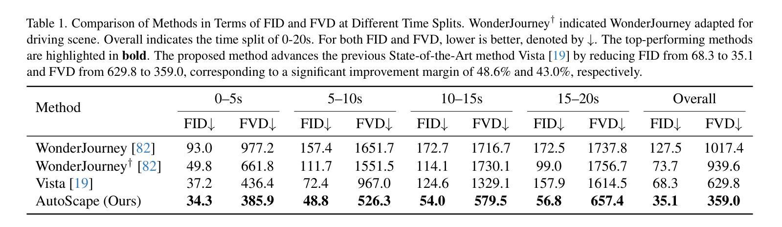 - AutoScape生成的驾驶视频具有逼真性和几何一致性,并能维持较长时间。