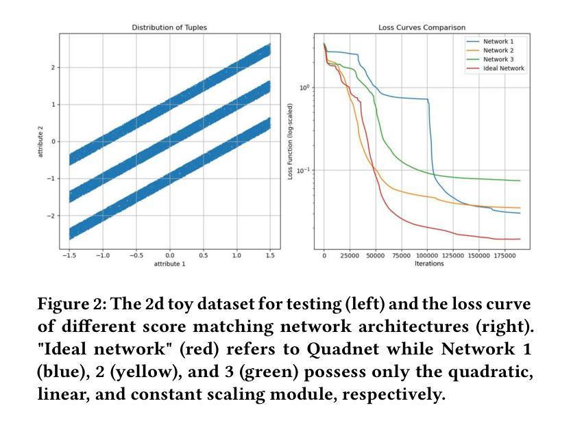 受基于分数的扩散模型在估计具有数千维的复杂文本、视频和图像分布方面的性能的启发,我们引入了加速扩散卡德斯特(ADC),这是基于简化的扩散模型的首个联合分布基数估计器。为了计算数据分布的逐点密度值,ADC的密度估计器使用一个公式来评估对数似然,该公式通过积分得分函数(一个梯度映射)来评估,ADC已经使用其轻量级的得分估计器学会了对其进行有效的近似。为了回答范围查询,ADC的选择性估计器首先使用高斯混合模型(GMM)预测其选择性,然后使用重要性抽样蒙特卡洛(Monte Carlo)通过密度估计器计算的更准确的逐点密度值来校正其预测。ADC+进一步训练决策树,以识别高容量、高选择性的查询,这些查询可以由GMM单独非常准确地预测,在这种情况下,它跳过校正阶段以防止蒙特卡洛增加更多的方差。这样做降低了中位数Q误差,并将每个查询的延迟时间减少了25%,使得ADC+通常是先进的联合分布基数估计器Naru的两倍速度。使用公认的基准测试进行的数值实验表明,在所有真实世界测试数据集上,ADC+能够与Naru竞争并且优于MSCN、DeepDB、LW-Tree和LW-NN,大约使用它们66%的存储空间,在95th和99th百分位误差上至少比MSCN准确三倍。此外,在属性表现出复杂、多方面关联的合成数据集上,ADC和ADC+表现出相当稳健的性能,而几乎其他所有模型都出现了明显的准确性下降。在这种情况下,ADC+的性能优于其他所有测试模型,在95th和99th百分位误差上比Naru准确10倍。