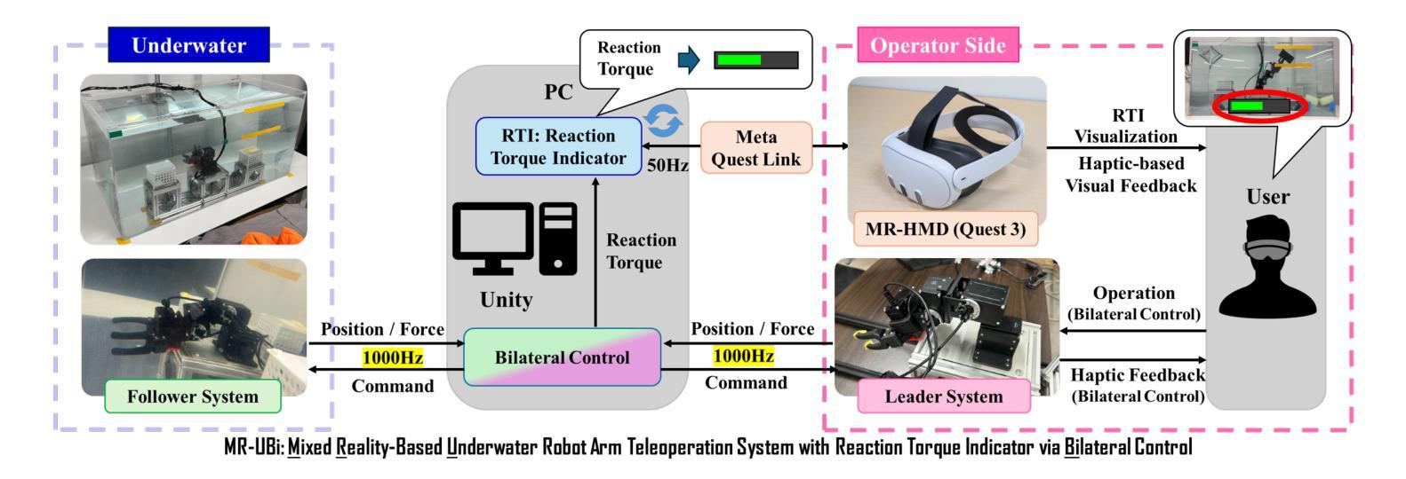 MR-UBi: Mixed Reality-Based Underwater Robot Arm Teleoperation System with Reaction Torque Indicator via Bilateral Control