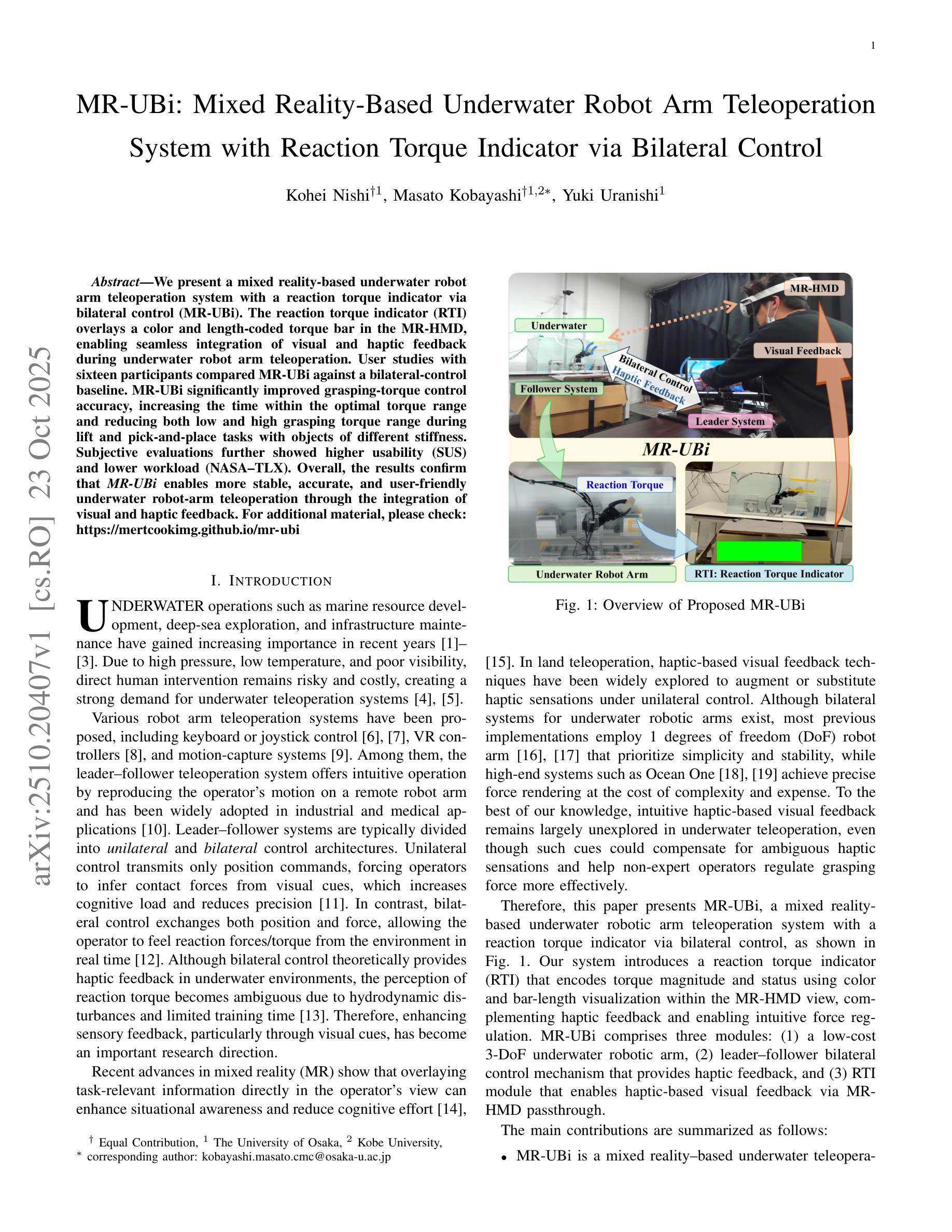 - MR-UBi是一种基于混合现实技术的水下机器人手臂遥操作体系。